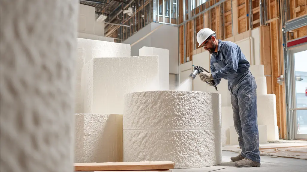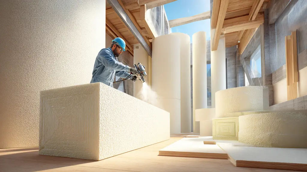 Um dos principais métodos de isolamento térmico projetado é a aplicação de espuma de poliuretano, que pode ser aplicada de maneira rápida e eficaz. Além de suas propriedades de isolamento, a espuma atua como uma barreira para umidade e ruído, contribuindo significativamente para a melhoria do conforto interno e redução de custos com climatização e aquecimento.
